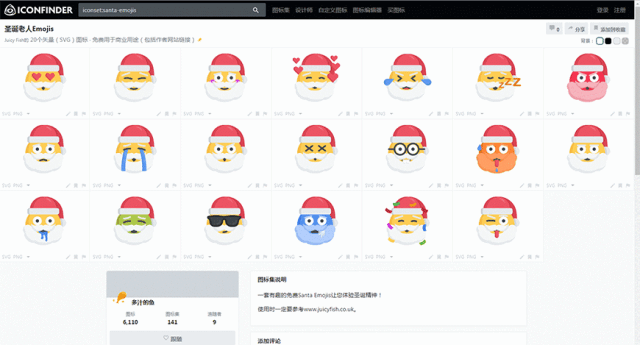 然后直接点击你想查看的图标集,我在这里选择了一个圣诞老人的表情包,点进去后可以看见完整的图标集展示和它的基本信息。