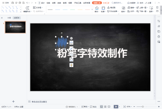 完成以上操作后,可以看到此前输入的字体已经有了粉笔字的效果,如果对字体的效果不满意,可以在绘制自由曲线时进行调整,最终制作出自己满意的粉笔字特效。