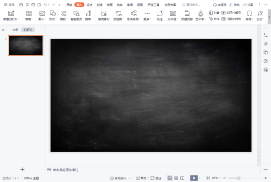 首先在网上找到一张黑板的图片,添加到PPT中作为背景。