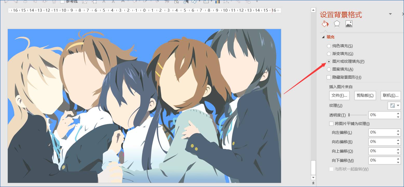 新建一页PPT,在空白地方右键鼠标,设置背景为图片填充。