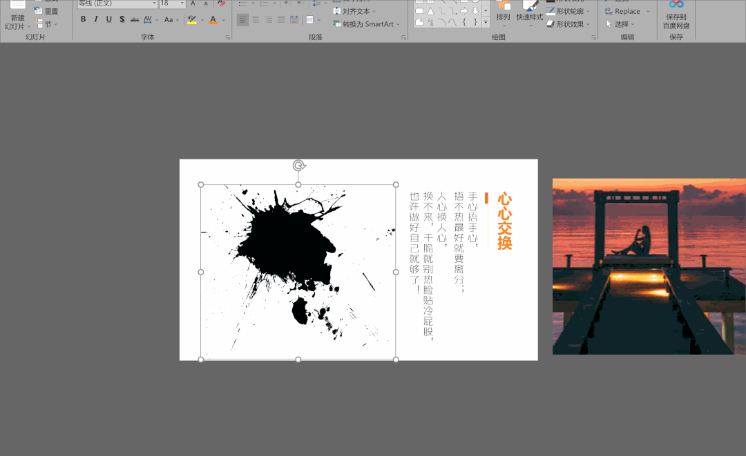 操作步骤:选中墨迹素材及图片素材——点击墨迹鼠标右键“设置图片格式”——复制图片——在图片填充中选择“图片或纹理填充”——点击“剪切板”,具体如下: