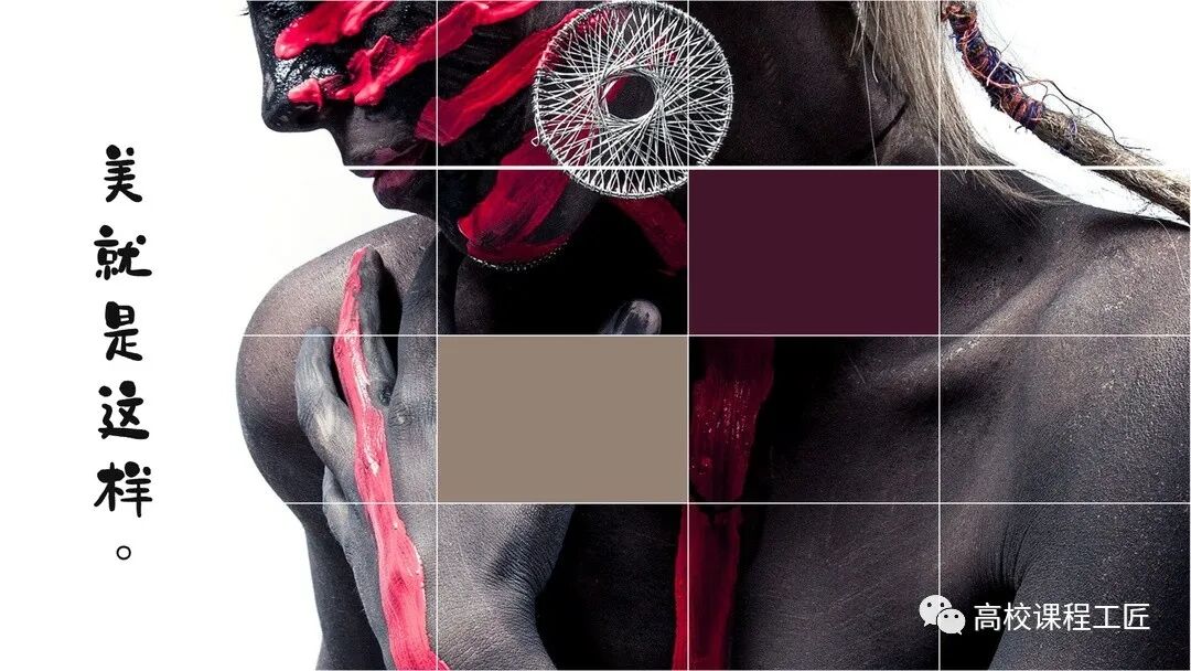 在做PPT的时候难免会遇到图片,如果给大家3张图片,大家是不是都会按照下图排版呢? 那是不是觉得这样排版很单调呢?接下来小编就教大家几种图片排版的方法。 单张图片的排版方法 小编这一节给大家介绍单张图片排版的方法,大概总结了以下几个方法。 这种方法适合比较有冲击力而且非常高清的图片。所谓的冲击力就是色彩、形状、对称、动感、留白以及情感等几个方面给人带来的视觉冲击感,小编举个例子: 对单张图片进行创意处理,裁剪或者分割成不规则的形状。具体可以参照“高校公众号”前面发布的两篇推文。 比如说下面这张图片,我们可以利用表格进行分割图片,其中几格改成自己想要的色块或者文字即可。 大家一起来看下这个操作过程。 温馨小提示 前面讲过几何裁剪、布尔运算裁剪、创意裁剪,这边又讲了表格分割法,大家只要好好研究这些技巧,就能做出好看的图片排版。 这个方法还是比较难的,也可以称随意剪切法。所谓的随意不是完全随意,它是指按照一定的构图技巧,从图片中剪切出最美的部分,让图片更加具有吸引力。 小编举几个例子: Before After Before After 这里主要采用摄像构图技巧中的三分法,使对象处于画面的1/3的黄金分割的焦点处。 使用这个方法往往是出现了以下情况: 1、PPT尺寸不对,比如说4:3图片剪切成16:9 2、拍摄出现意外,图片中出现了不该出现的部分 3、照片扭曲,歪了,可以通过适当的剪切进行矫正 4、图片构图上不好,整体上看上去不协调 所谓局部遮挡法其实就像布尔运算中的剪除运算,让图片的一部分被遮挡住,凸显遮挡部分内容,图片成为衬托。 一起来看下怎么操作的。 所谓图片蒙版法就是对图片整体或者局部附上一层透明度比较低的图形,使图片看上去神秘有质感。 单张图片排版的方法就介绍那么多,万变不离其宗,任何复杂的排版都是简单排版的组合。