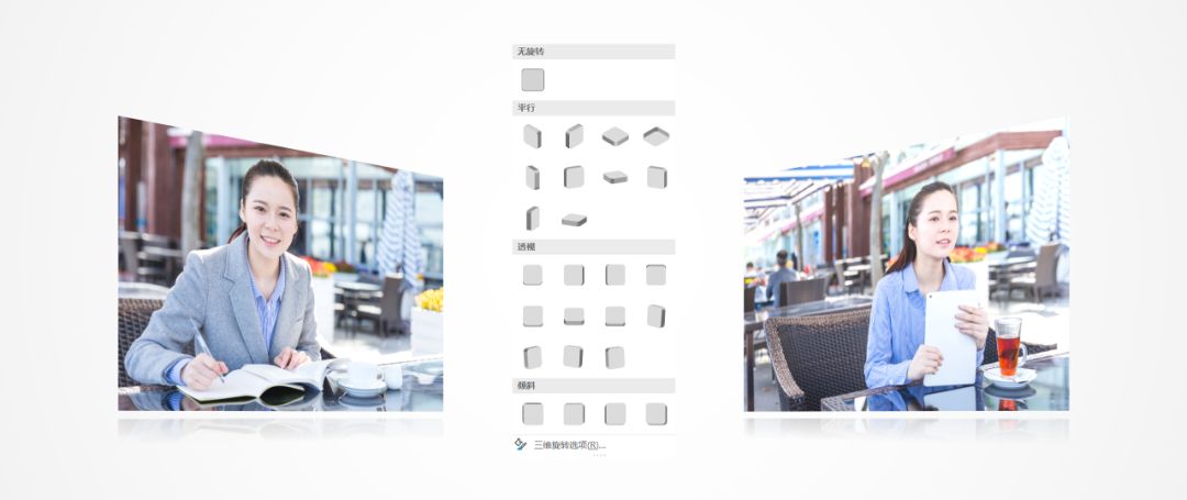 而无论是哪一种形式,都可以使用软件自带的三维转换效果,轻松完成。