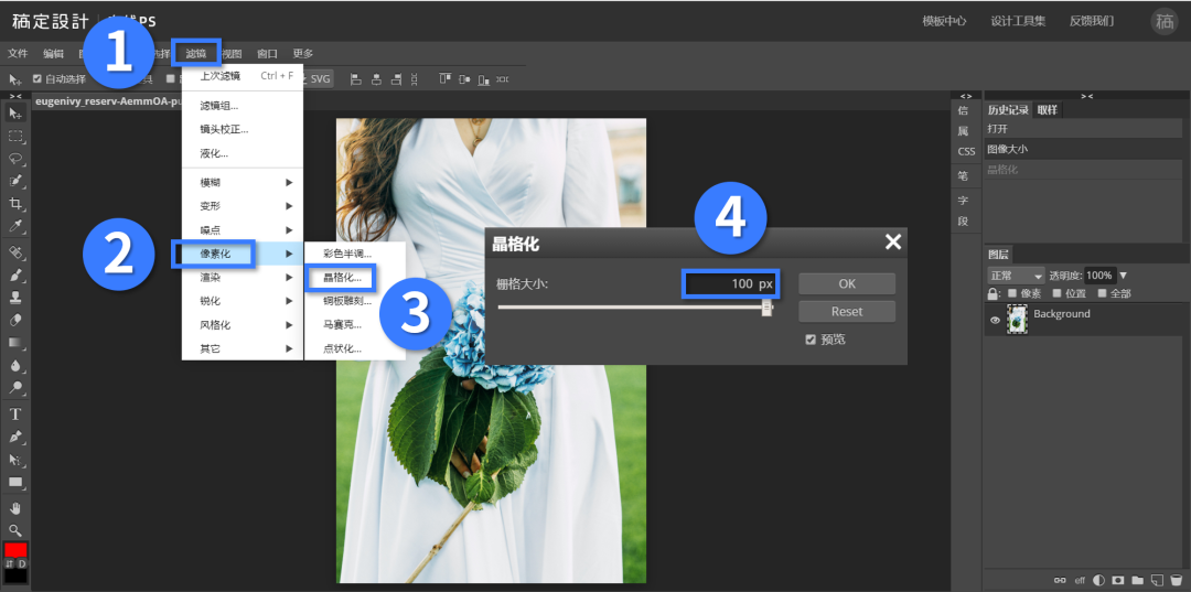 这个方法需要用到PS里的【晶格化】功能,如果你没安装PS,那也没关系,打开一个叫做“稿定网”的网站,网址:gaoding.com
