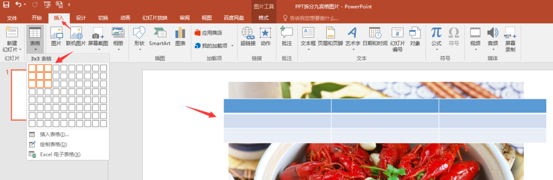 メ再插图一张3*3的表格,插入——拖动表格。メ