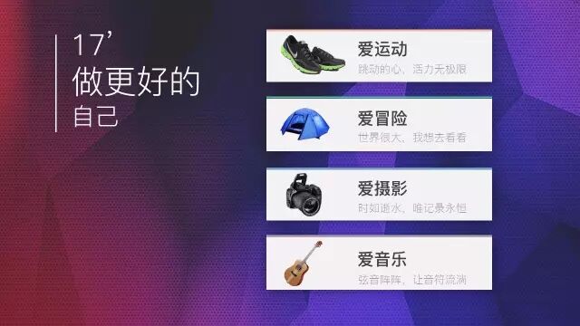 ⑤布局灵活。卡片之间可以被堆叠, 覆盖,可置于图片、纹理等背景之上,具有明显的层次感,排版形式非常灵活。