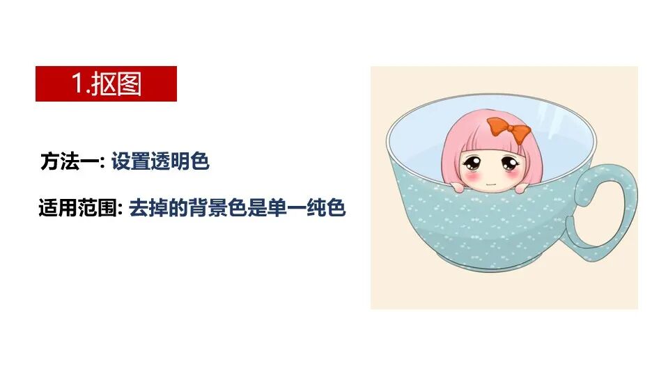 涉及到图片处理,PPT中我们最频繁用到的就两种:一是抠图(去背景),二是裁剪。