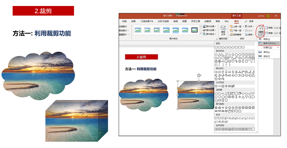 一个是按比例裁剪,还可以裁剪为各种不同形状