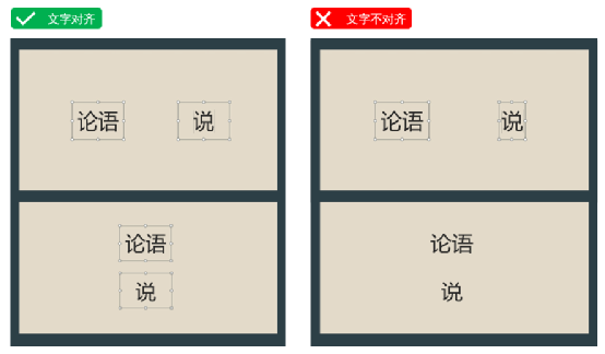 当 “说”和“论语”的文本框大小一样时,在PPT软件眼里它们的大小是一样的,无论横排还是竖排看起来都是对齐的。反之文本框大小不一样则不对齐。(备注:文字,只是文本框内填充的元素,PPT软件不计算元素具体形状。)