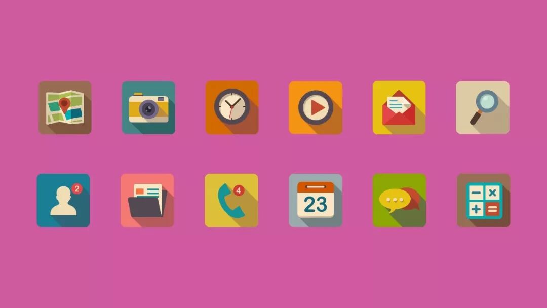 目前,长阴影设计主要用于图标、文字等对象上,如图所示。