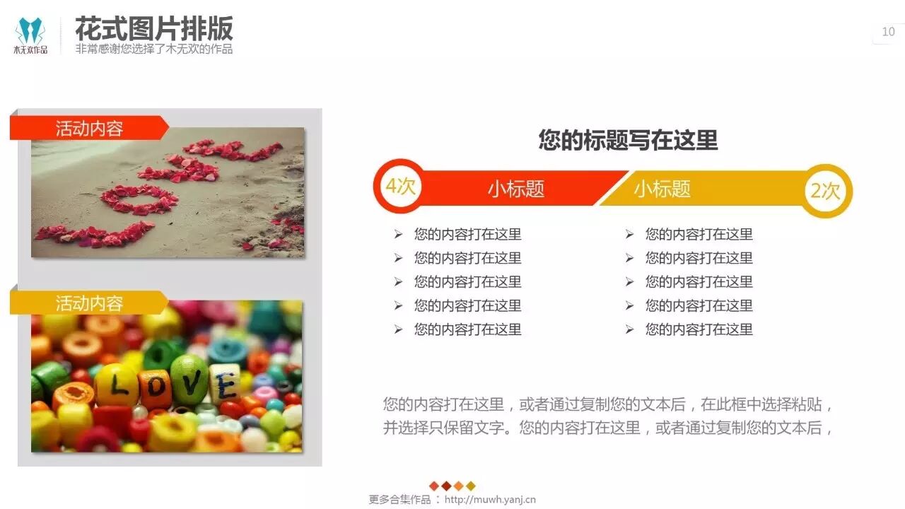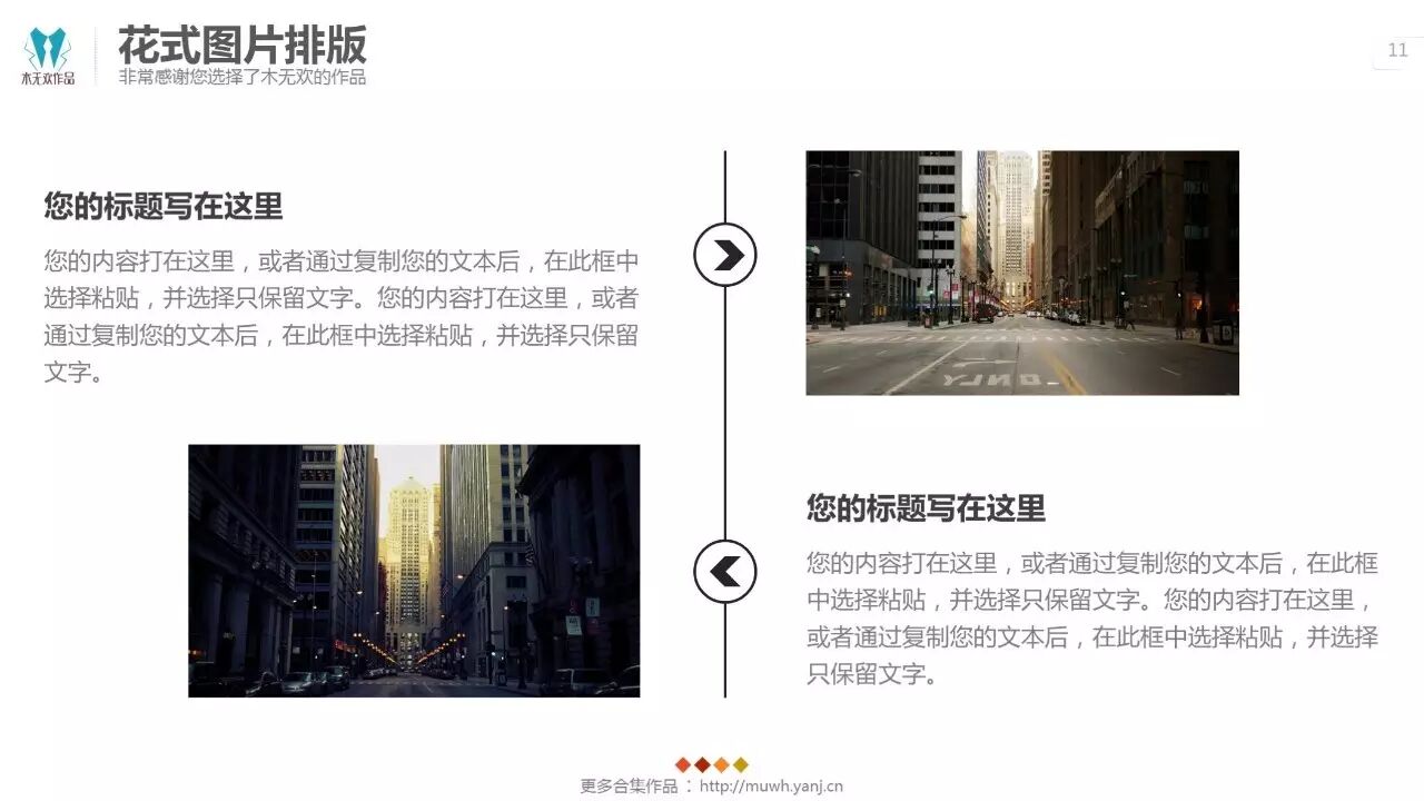 在做党政、活动介绍类的PPT的时候用最多的就是大量的小图片,很难排版!不像产品发布可以使用大图覆盖,本期的合集,纯小图排版方式。