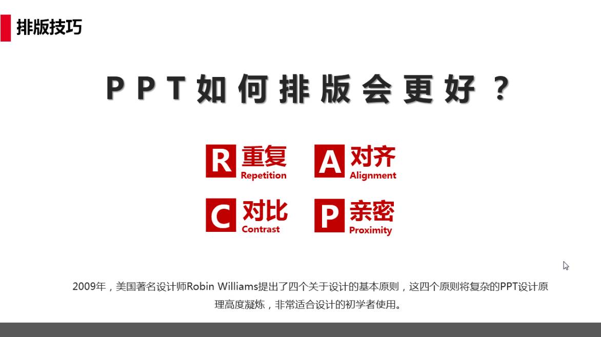 关于四个基本原则可以查看:这四个排版秘籍,可以提高你制作PPT的专业性?