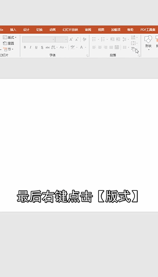 ❸在 PPT 空白处,单击鼠标右键,选择【版式】,把当前幻灯片页面换成刚刚设置好的版式;