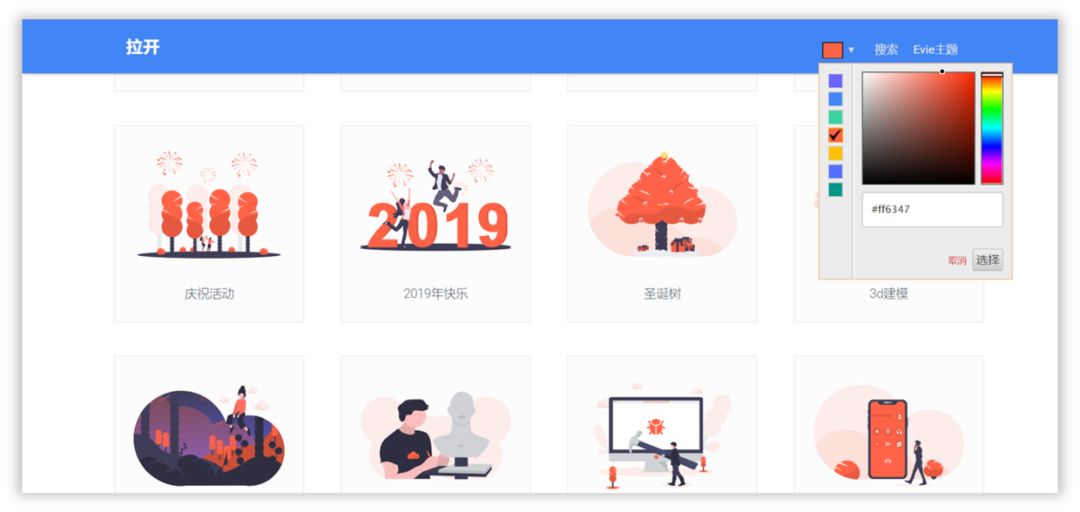 这里也有一个功能可以一键修改颜色,非常方便,最后选择合适的插图下载即可,看一下。