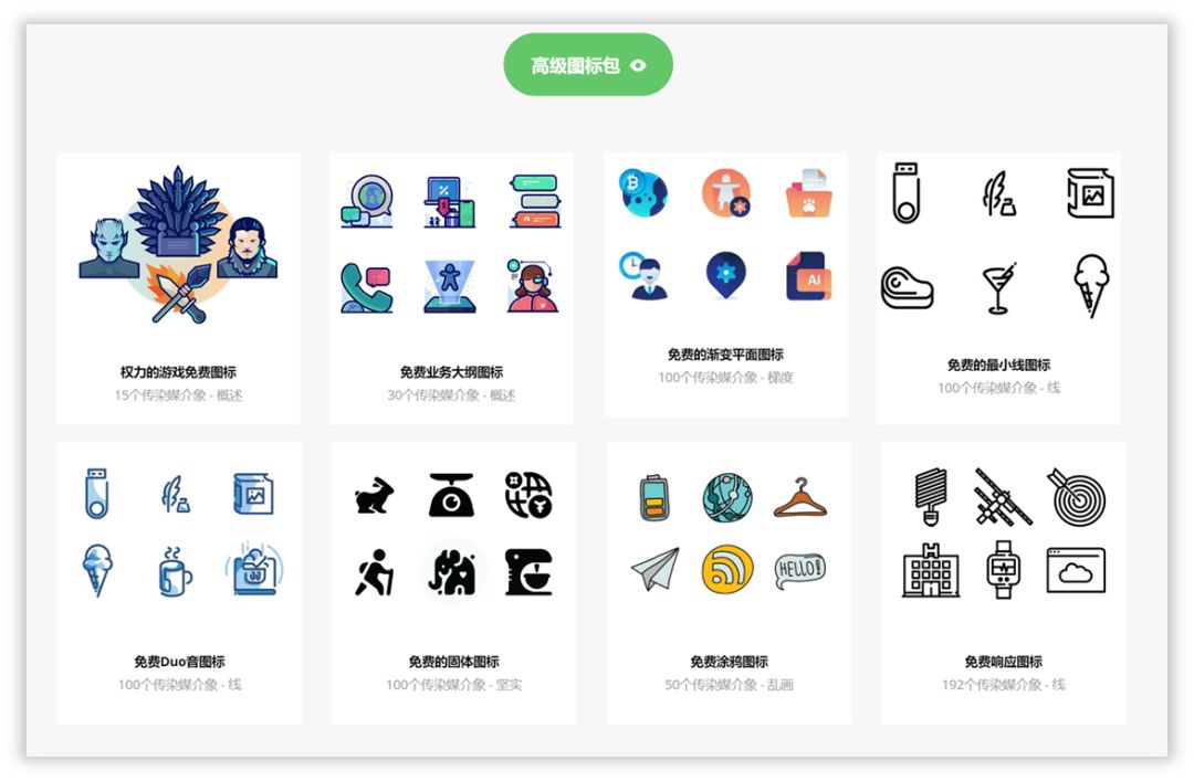 看一下,图标包大概都是这种效果,非常有设计感。