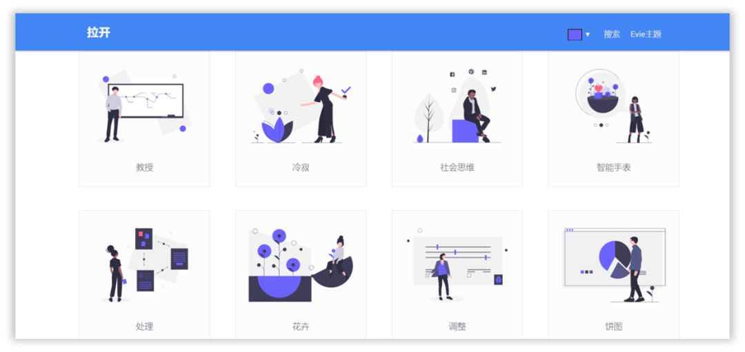 undraw网是一个插图类型的图标网站,里面不仅有精美的场景图而且还能进行修改。