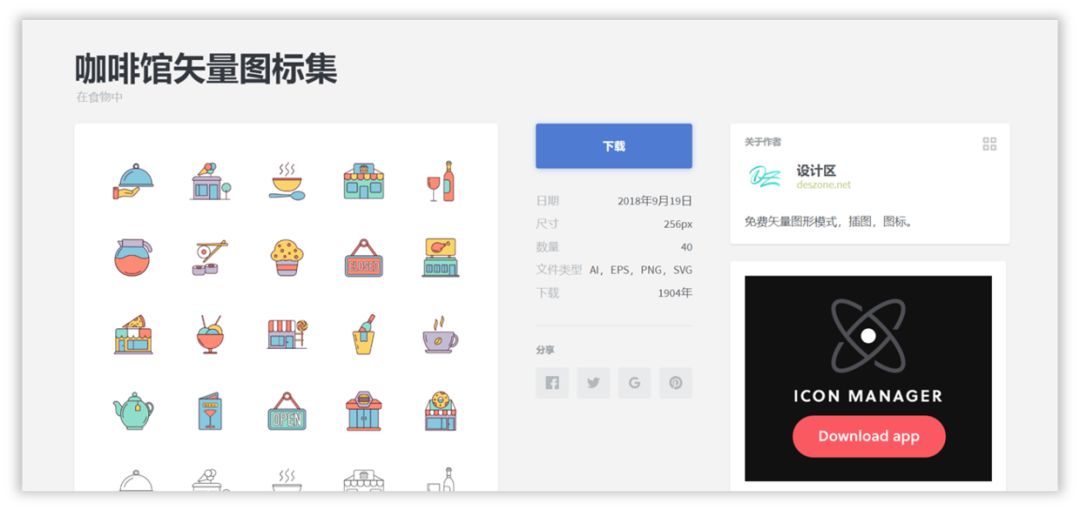 其下载的图标不是单个的,而是一个风格统一的包。