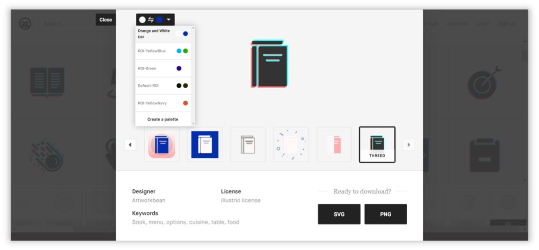 除此之外,还可以在下载的时候修改颜色和效果,选择SVG或者PNG格式即可下载。