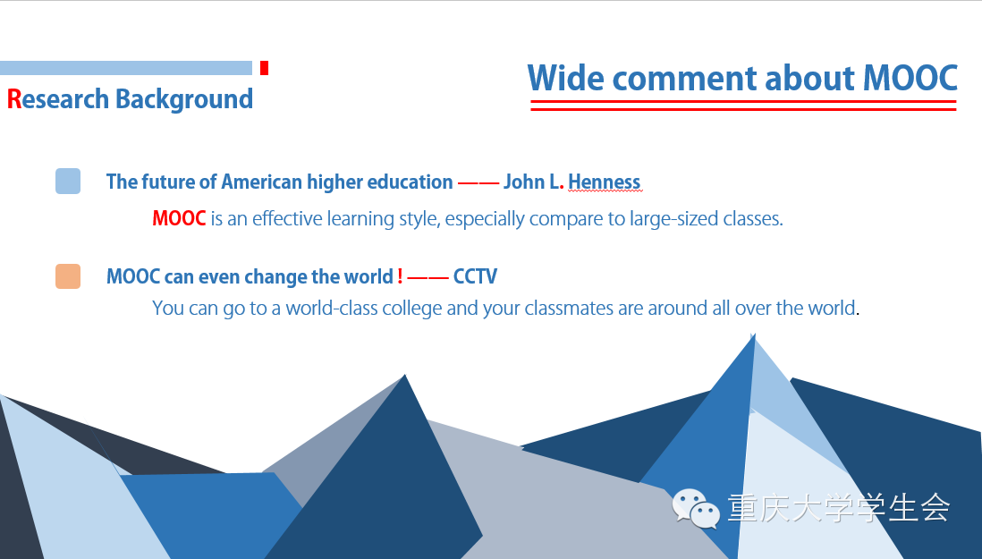 上面是小编英语课做Presentation时用的一份PPT,设计十分简单,甚至没有配图,但是从配色来看已经完成了“清晰达意”的基本任务。