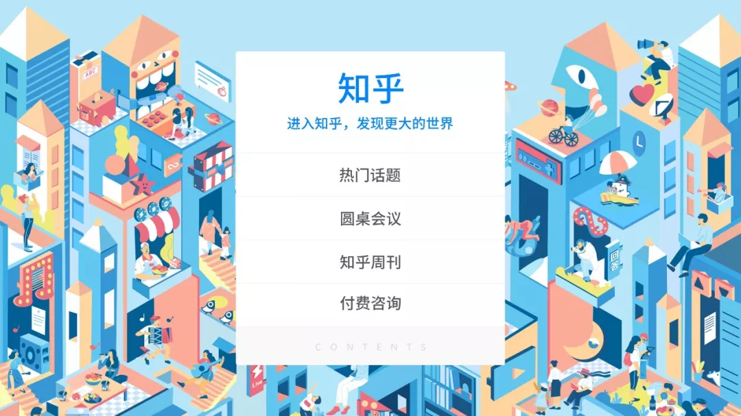 你也可以参考知乎的设计方法,将目录页做成像菜单一样的效果,也是蛮特别的。
