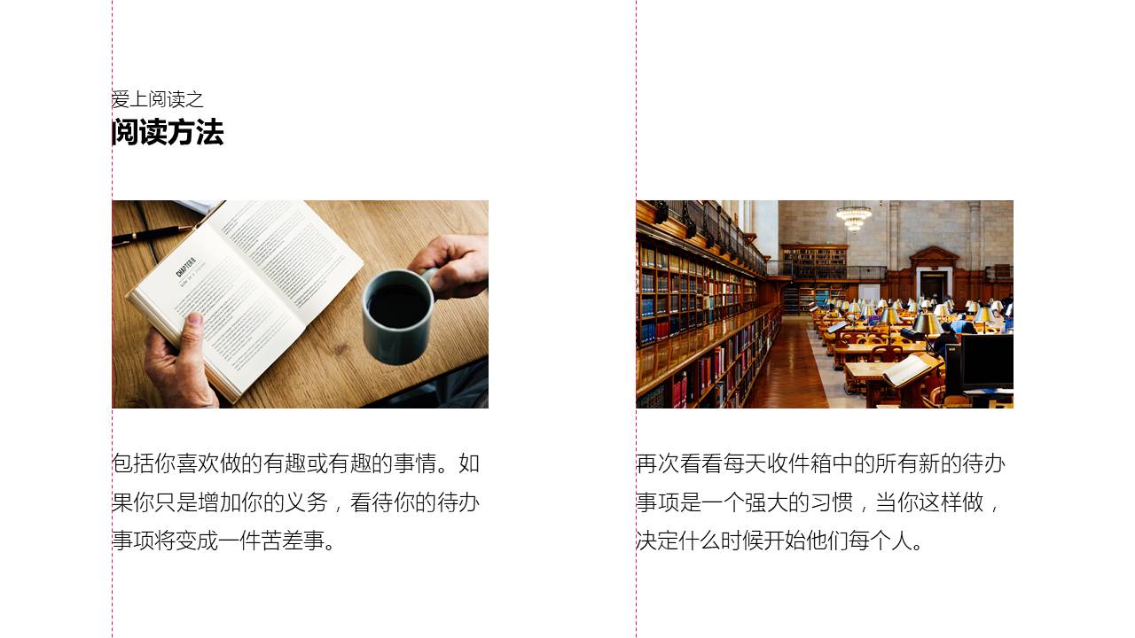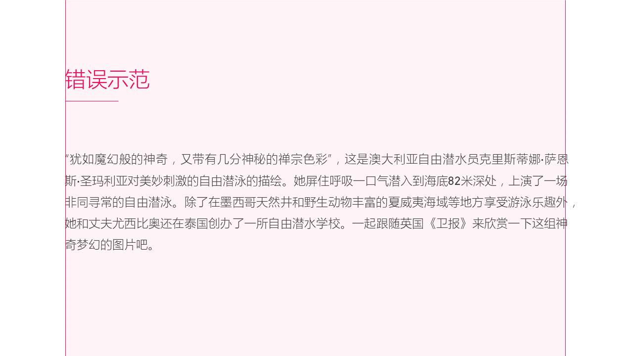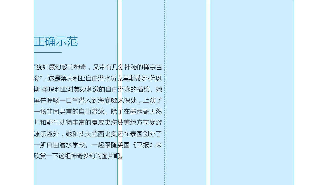 但是,你知道吗?如果文段长度过大,看起来会很费力。正确的做法呢,是保持版心的三分之一,最大不要超过二分之一。