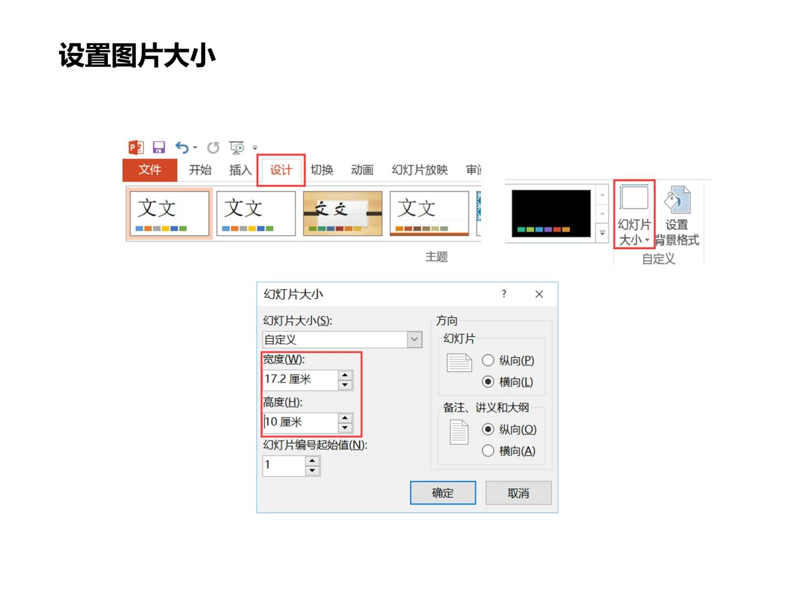 4、设置你要生成的图片大小,设计-幻灯片大小-自定义幻灯片大小,根据需要来设置幻灯片大小;假设这里是一张双栏图片,所以设置成17.2厘米宽,高度大概估计成10厘米(图4),如果高度不合适,再次设置即可。图片的分辨率之前已经设置好,我一般把ppt的导出图片分辨率设置为600dpi(这一步也可以在一开始就做好,看个人习惯)。