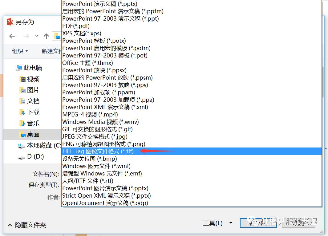 6、“另存为”需要的格式,一般是tif格式(图5),一般选“仅当前幻灯片”,选择“所有幻灯片”,则会自动生成一个文件夹把所有幻灯片都保存成图片。
