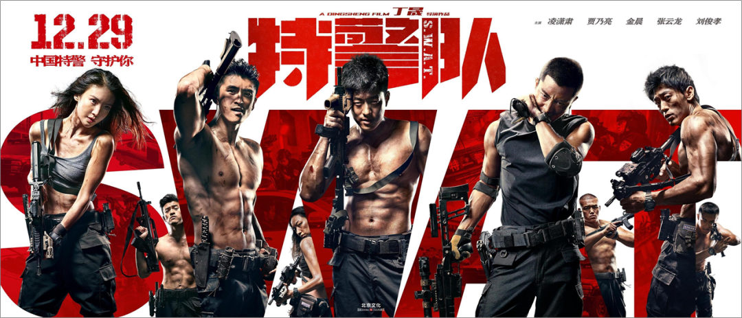 类似的,我们在一些海报中见过,比如下面这个电影《特警队》的海报。