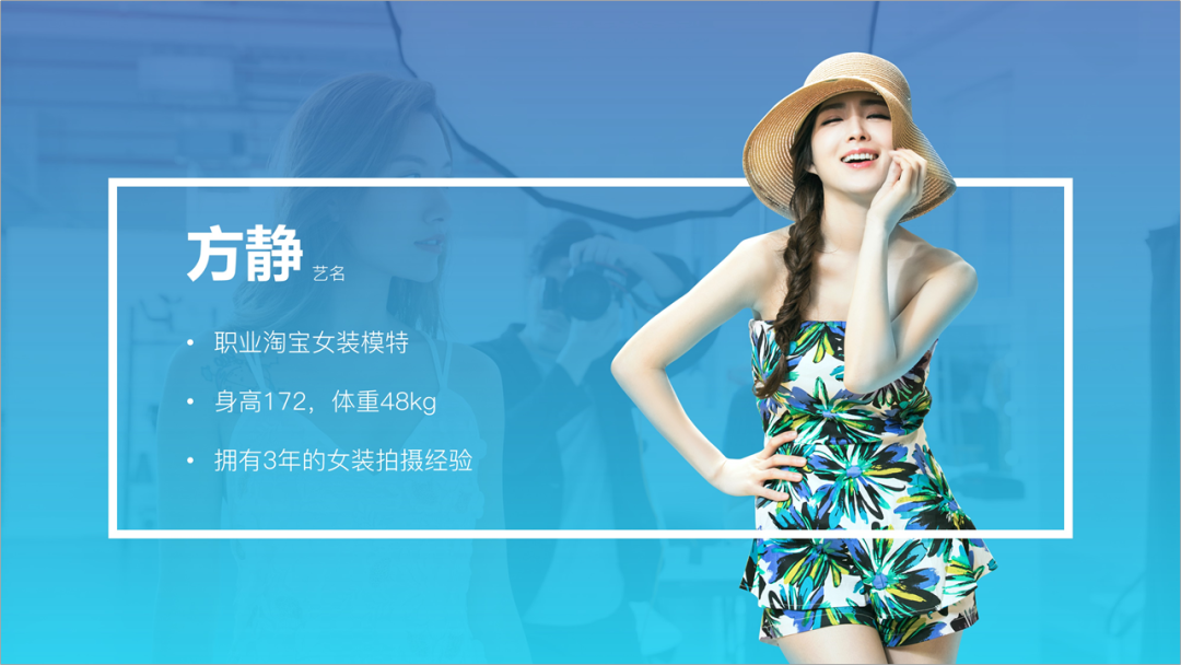 人物顶部要超出色块的边缘,这样看起来就像“穿”过去一样,更有层次感。