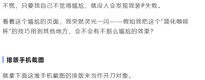 平时我们排版这类截图时,一般都是像下面这样插入一张手机图片,再把截图啥的放上去: