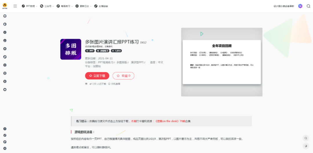 这是咱们的固定栏目,打卡问题解析,已经是第 17 期了,本期的主题是多张图片演讲汇报 PPT 练习。