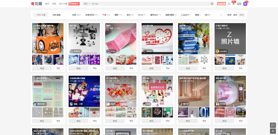 那我们打开花瓣网之类的灵感站,搜一搜这些关键词: