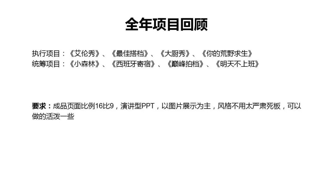 通常来说,影视、游戏或娱乐综艺节目,如果还在策划阶段,在 PPT 中有三种处理方式。