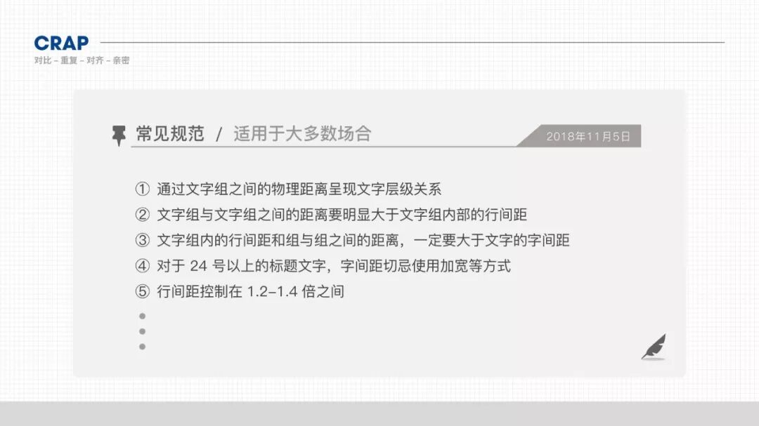 ③划分好文字层级之后,我们还需要在视觉上进行文字层级的划分。核心思想就是排版的四原则 - CRAP。