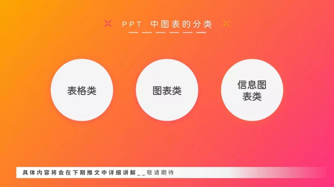 在PPT 中,图表呈现的方式大体上分为三类:表格类、图表类、信息图表类。