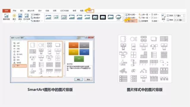 有人说这不是图片样式吗?又不是SmartArt。其实看内容就知道,两者的图形模式都是一样的,不一样的地方就是SmartArt是插入图形,然后插入图片,而图片样式是选中图片之后,然后排版。