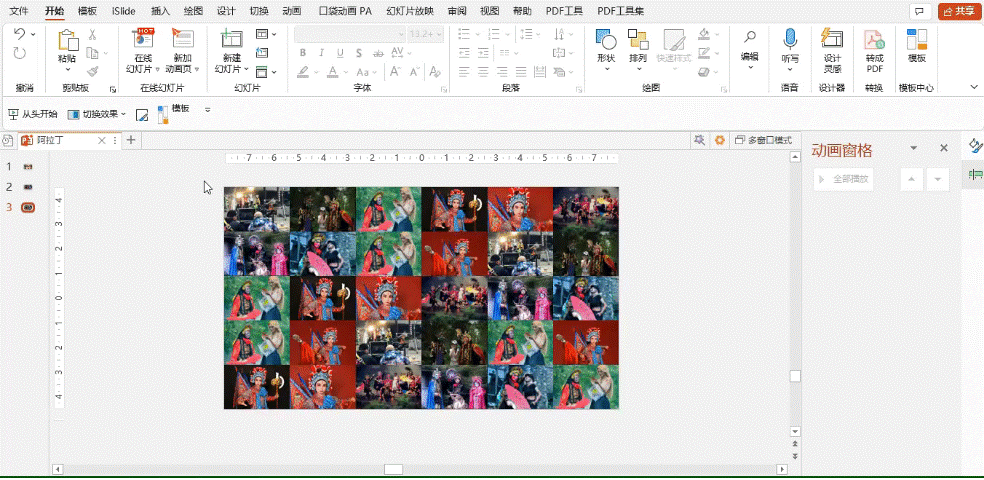 c,调整所有图片延迟时间,在动画窗格中一个一个拖(时间错开、特别是相邻位置图片时间)。多试两遍,效果更佳。