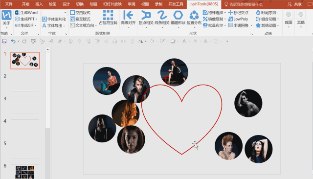 这个插件的牛逼之处就在于,可以让你自定义路径,然后绕排所有的对象。比如,咱们这里自定义一个心形的绕排。