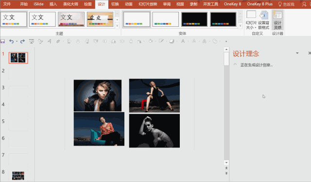 操作也很简单,点击“设计灵感”后,选择我们满意的版式即可。这种排版,只需要1秒钟,够快吧!