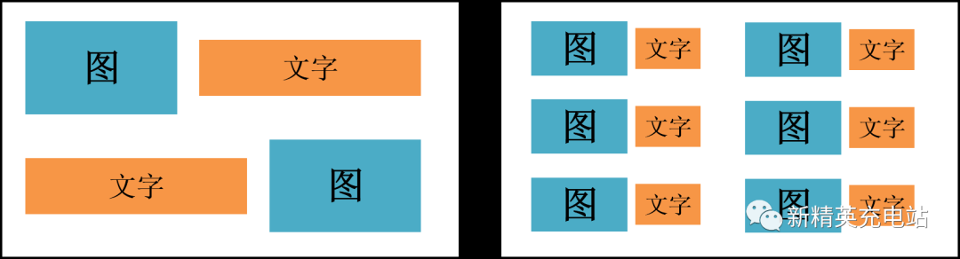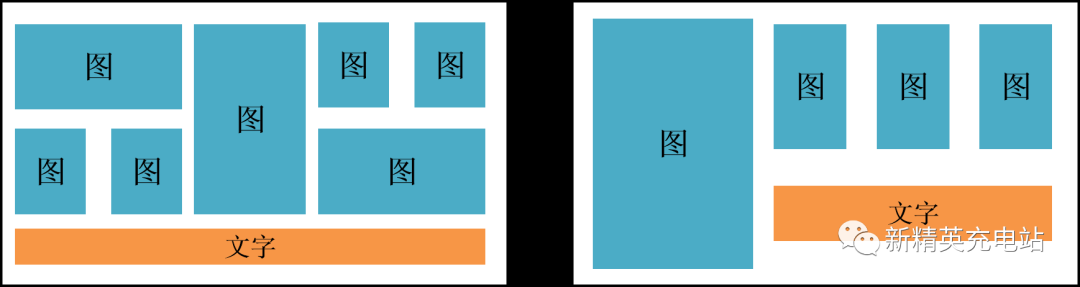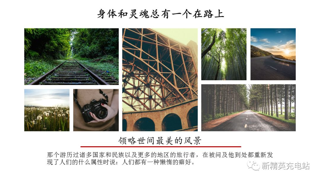 1.单张图 只有一张图片时,如果图片够清晰,可以采用全屏型排版方式。这种排版方式多用于发布会、演讲等场合。全屏型的排版中,文字应放在图片内容较少的地方,可以添加遮罩图形,增加文字清晰度。如下图所示,是3 种常见的全屏型图文排版方式。 全屏型图文排版通常文字较少,效果如下图所示。 当图片不够大,或者是文字较多时,图片不适合放大到全屏。此时可以将图片放在左边、右边、上边、下边、中间进行排版,如下图所示。 根据现在流行的16 ∶ 9 的幻灯片页面比例,放在左右两边的图片应该是长图型,如果图片的宽度较大,则适合放在上下位置。 如下图所示,分别是图片在左边和上边的图文排版效果。 2.奇数图片 对称是一种美,也是PPT排版的一大原则。所以奇数张图片最重要的排版方式是让其对齐。奇数张图片无法做到两两对齐,但是可以所有图片在水平或垂直方向对齐,排版示意图如下。 根据幻灯片的比例,奇数张图片数量较少时可以选择垂直对齐,数量较多时建议选择横向对齐。当数量为三张时,两种对齐方式均可。如下图所示,是三张图片关于横向对齐的排版方式。 保证图片的对齐,包括左右、上下对齐,以及图片的间距分布相等,除了使用前面章节讲到过的【横向分布】、【纵向分布】来保证图片间距相等外,还可以在对齐图片时观察参考线。如下图所示,图片间的箭头表示此时图片间的距离是均等的。 3.偶数图片 适用于奇数张图片的排版方式也适用于偶数张图片,除此之外,偶数张图片还可以使用以下四种排版方式,这四种排版方式同样要注意图文的上下左右对齐及间距是否均等分布。 如下图所示,是两张图片的排版案例。 4.不规则排版 如果想追求更有设计感、更个性化的排版方式,或者是图片数量超过6张时,可以使用不规则排版。这种排版方式十分灵活,变化多端,但是其核心原则同样是对齐,可以是水平方向对齐、垂直方向对齐、关于一条斜线对齐,等等。如下所示,是四种不规则排版示意图。 不规则排版方式中,所有图片的大小不一定相等,但是整体版面要符合对齐原则,效果如下图所示。