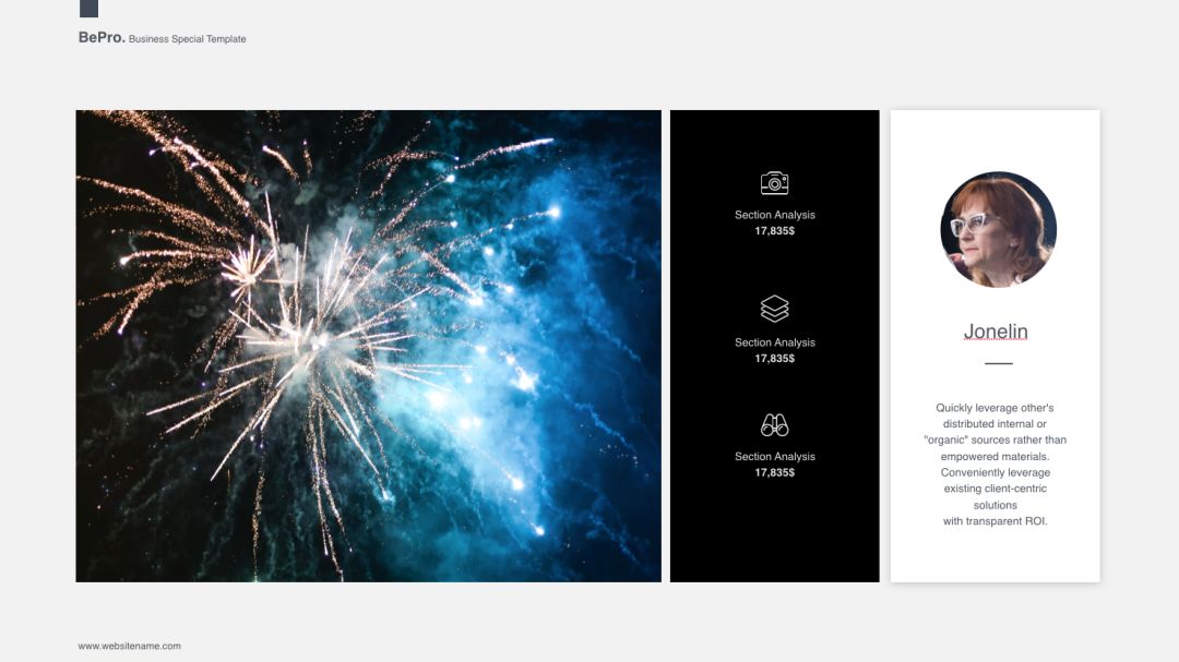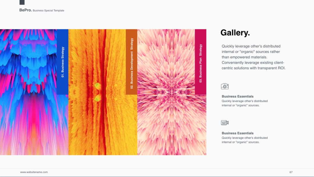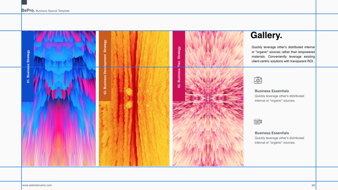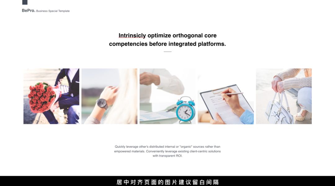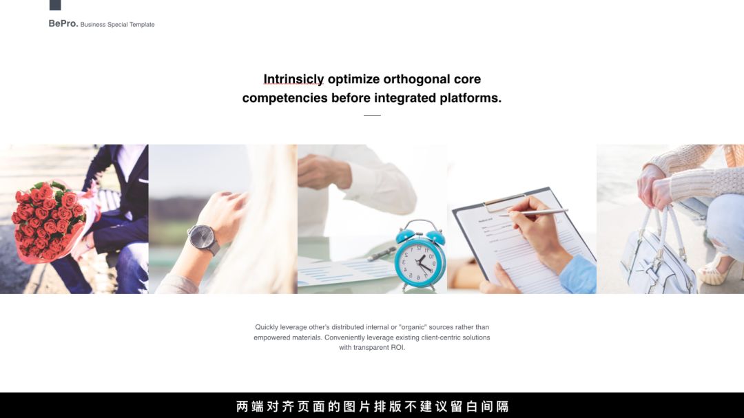 而这两项也决定了你的PPT元素应该和谁对齐。以下面的这张幻灯片为例,标准的上下三等分PPT,文字你可以沿用中心对齐。如图: