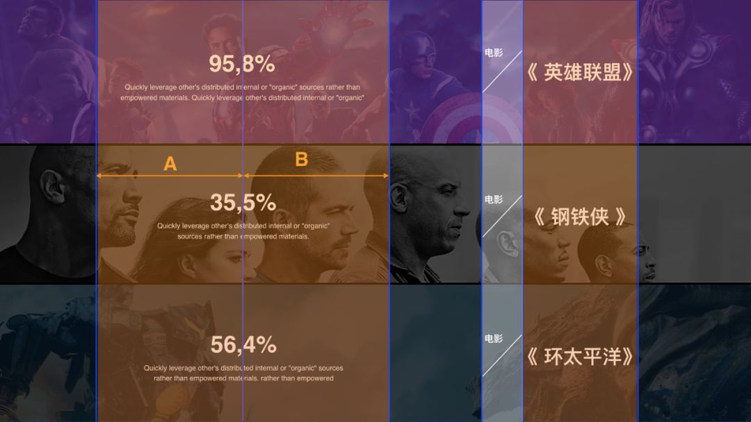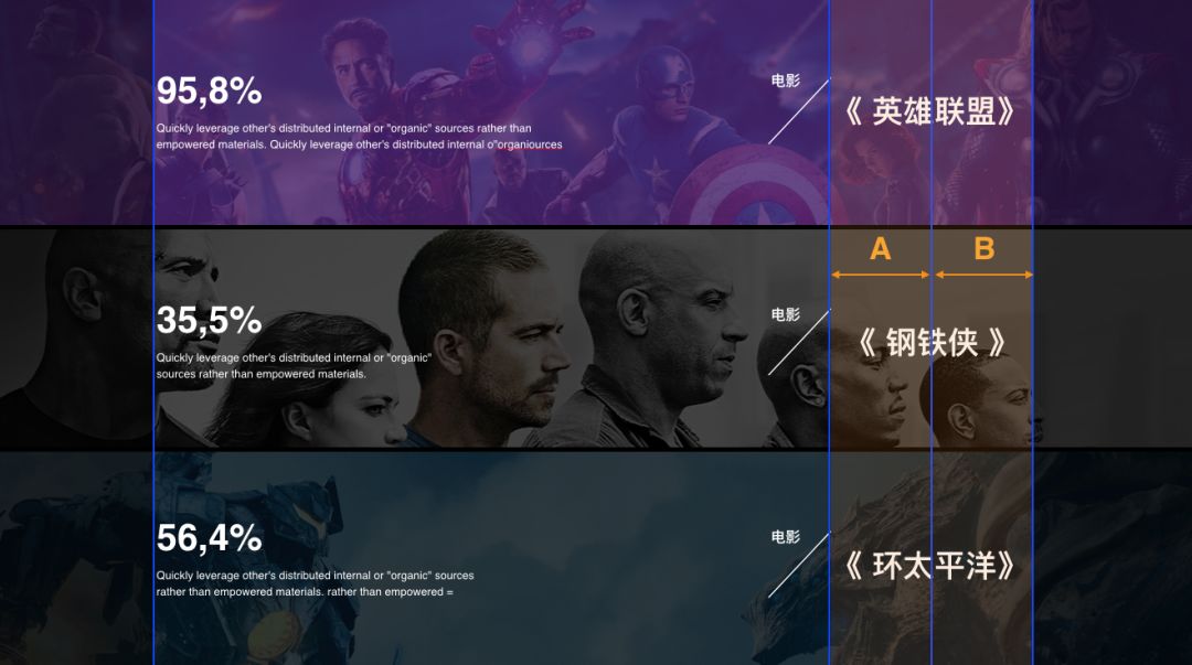 可以看到,左侧文字采用左对齐,已知边距位置,右侧文字采用统一元素、统一排版形式,这里是选用了电影使用左对齐,影片名称采用组居中对齐方式。如图: