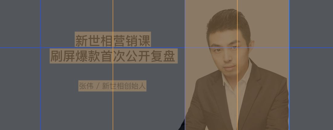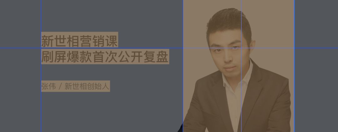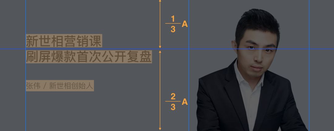 我相信,任何一个小的知识点都值得我拆解。我们可以看出,文字标题部分沿用了黄金分割理论。问题出在了新世相张伟身上,感觉右侧的画面有些向外偏移,没有聚焦画面的感觉,给人的感觉就是好像这个文案和人物没有什么关系。