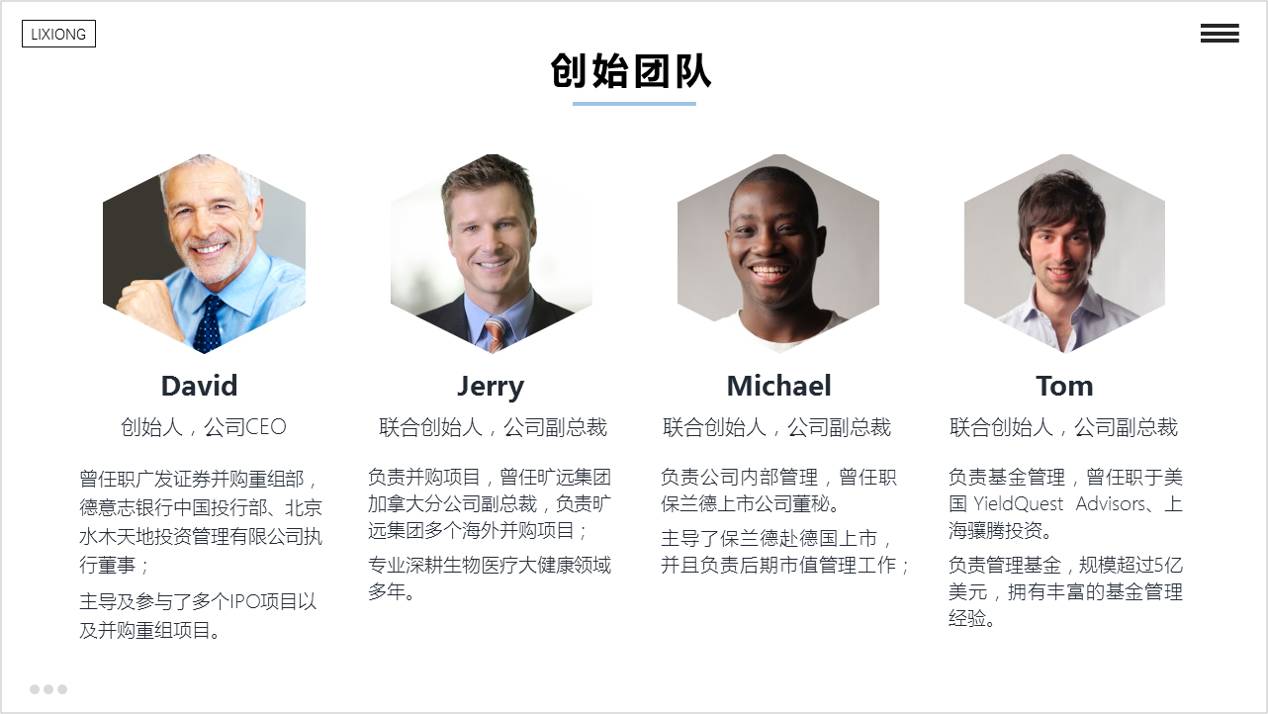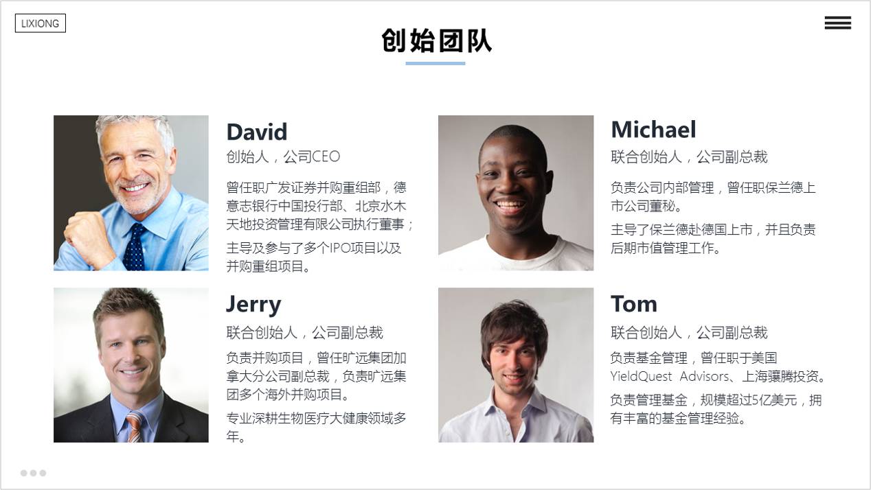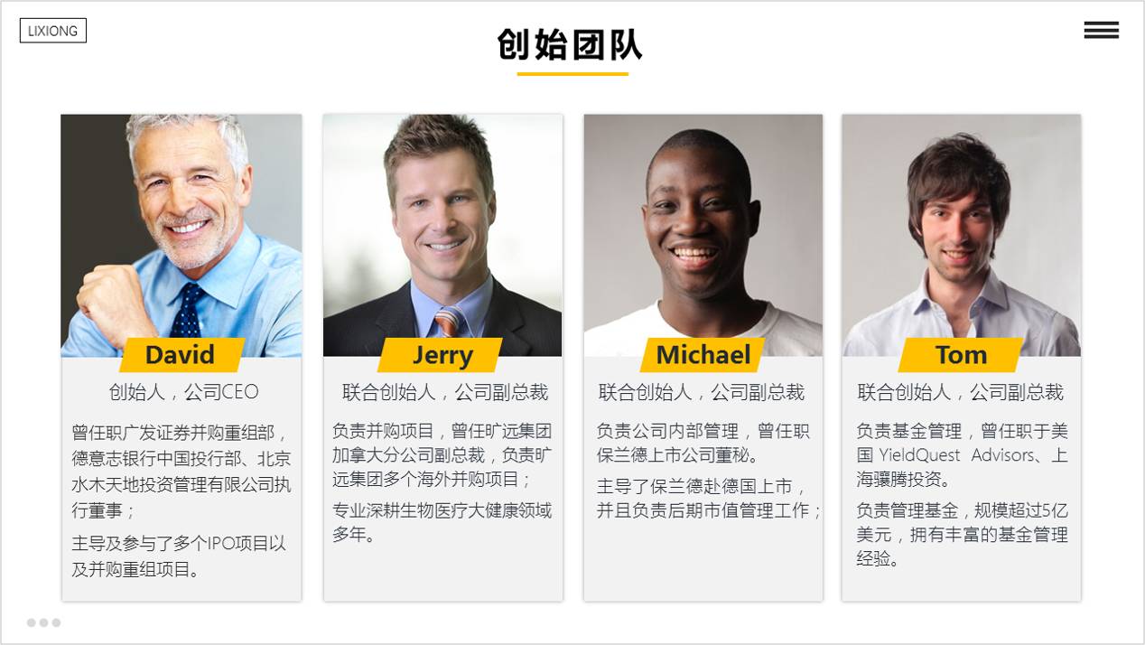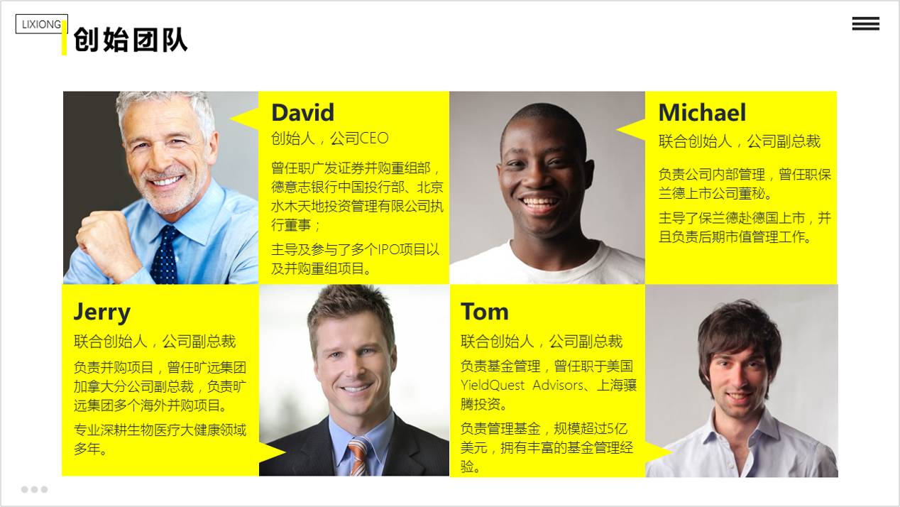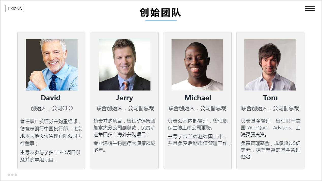 团队介绍,是PPT中最常见内容,无论是公司简介、项目介绍还是融资方案,都有这么一页,它是用来介绍公司的核心团队的。