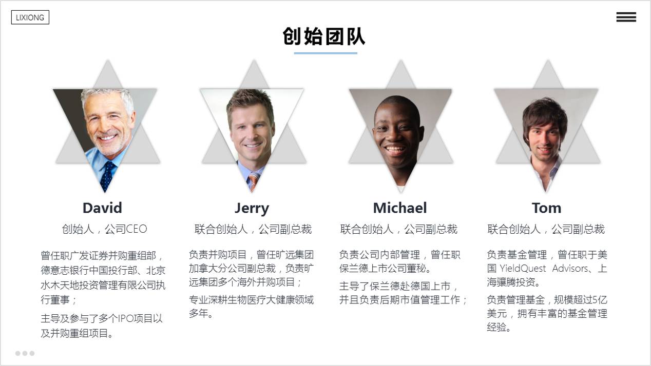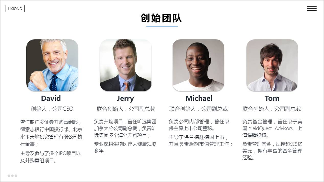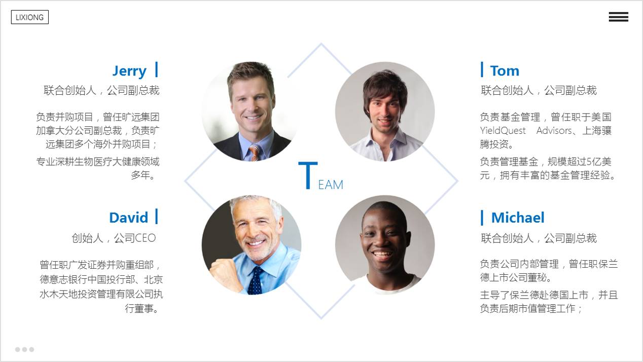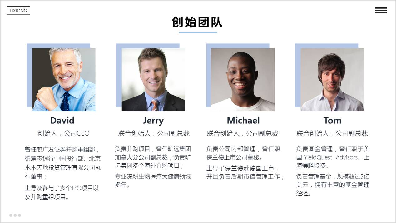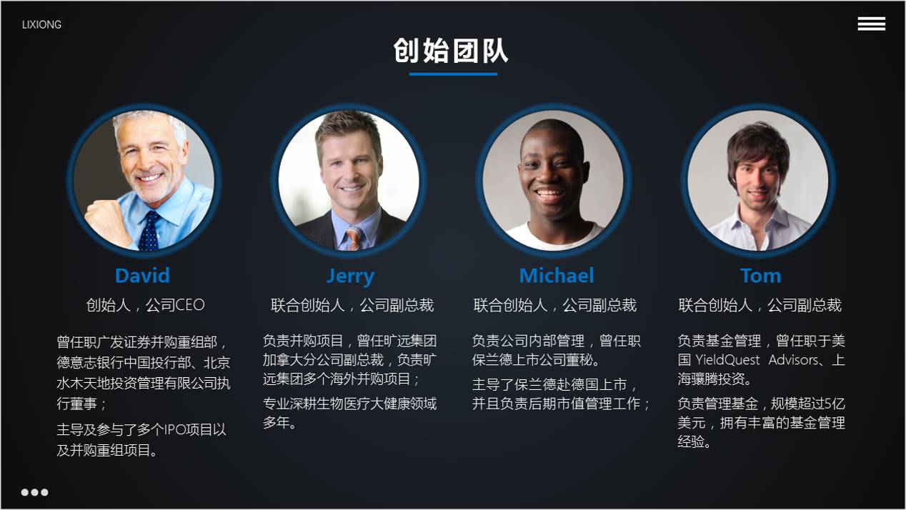 团队介绍,是PPT中最常见内容,无论是公司简介、项目介绍还是融资方案,都有这么一页,它是用来介绍公司的核心团队的。