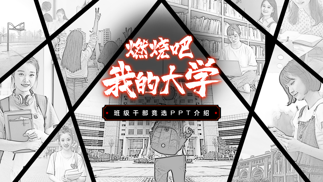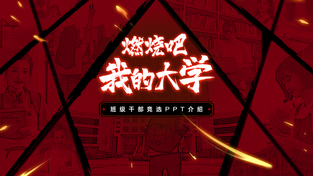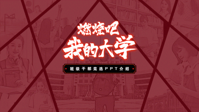 再来看一个 PPT 的封面,内容很简单,就是一个班干部竞选的 PPT :