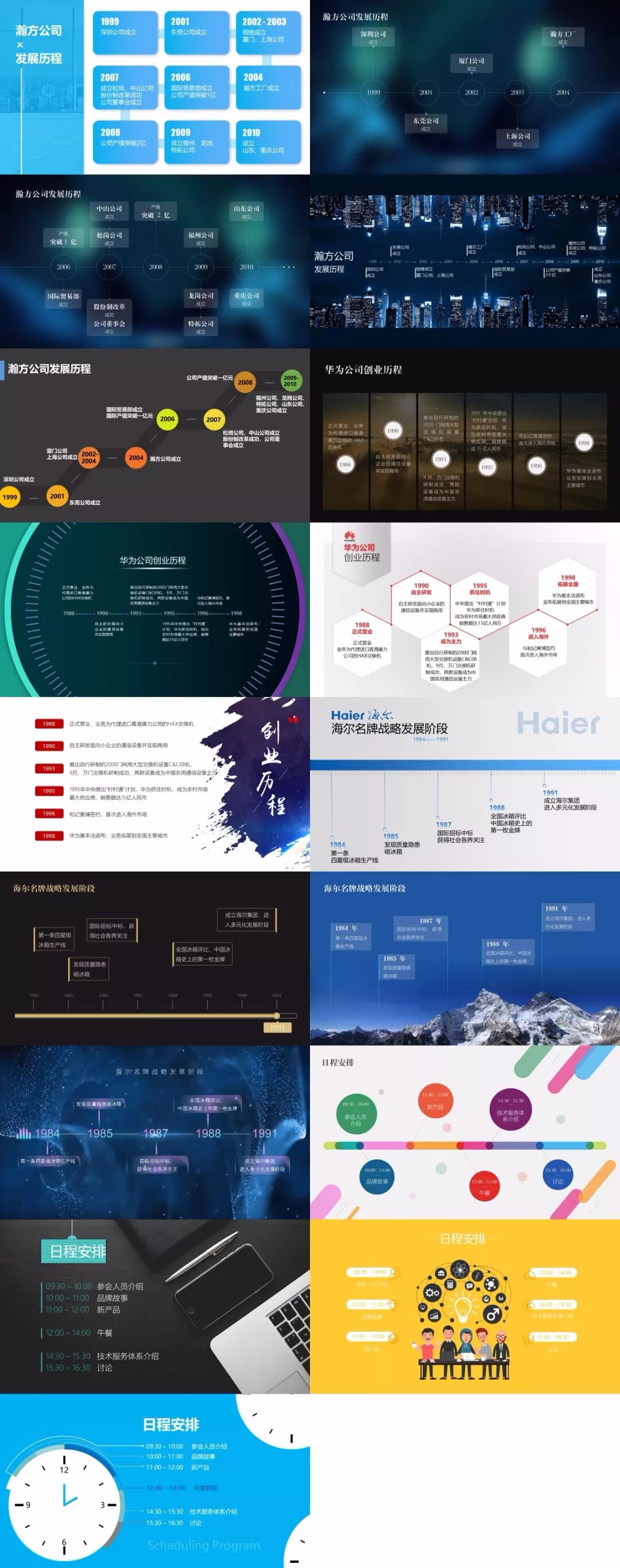 如何制作时间轴页面,最常见的是点线元素的结合,当然也可以根据文字内容和时间数量,在版面的布局上进行适当的调整。希望前面这些作品能给大家一些参考!