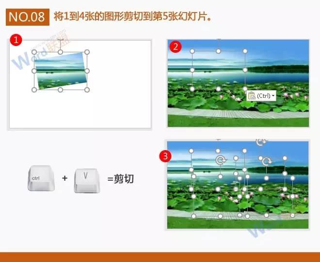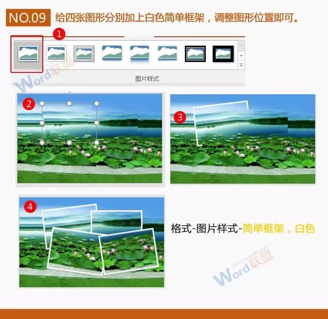 9、给四张图形分别加上白色简单框架,调整图形位置即可。