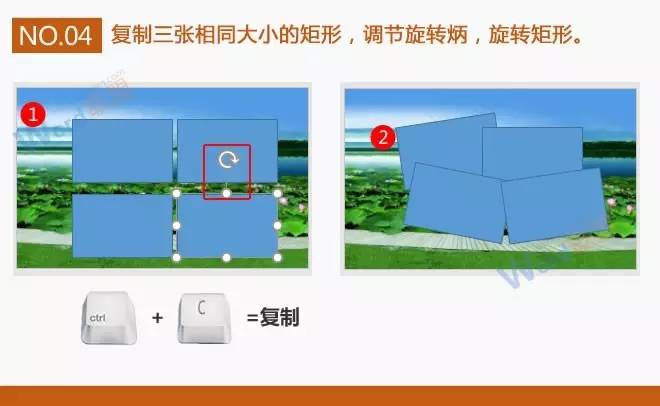 4、复制三张相同大小的矩形,调节旋转炳,旋转矩形。