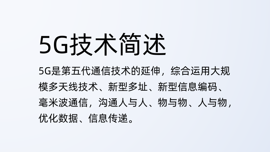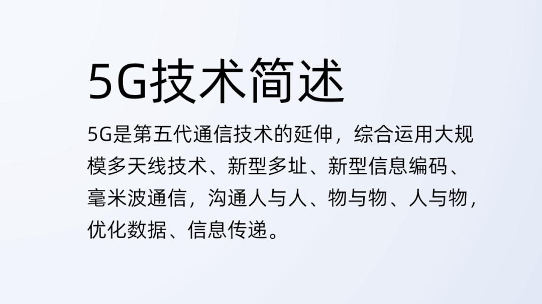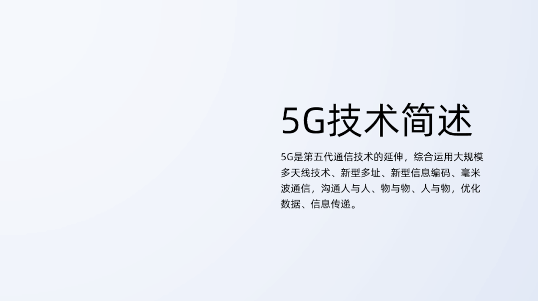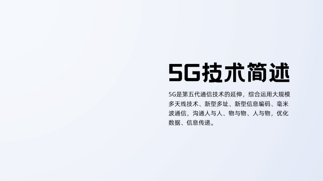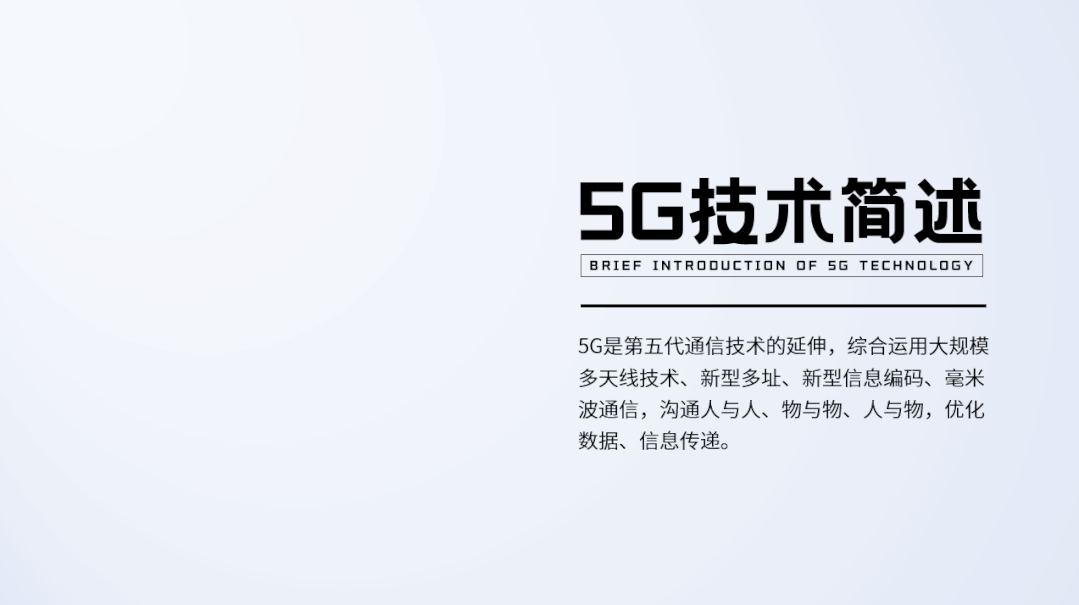 从文案可以发现,这是对5G技术的一个简介,如果我们把他设计成偏阅读型PPT的话,文案也可不做删减提炼(内容本身不多)。